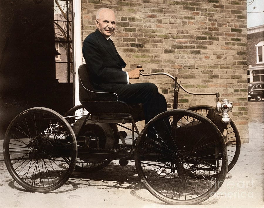 Henry Ford in first Ford car by Bettmann